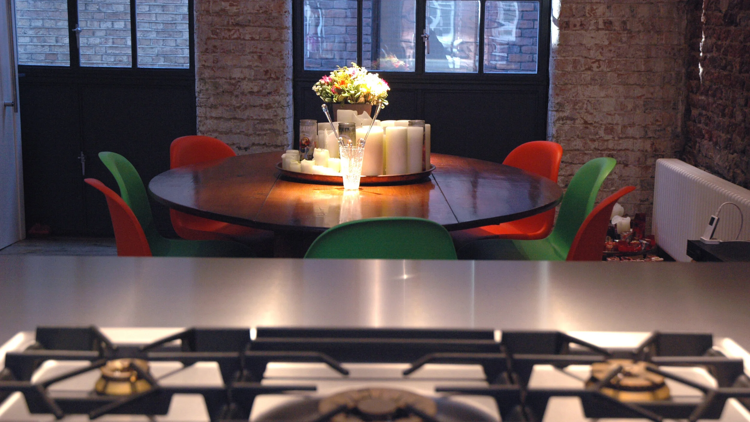 The raw character of the original brickwork, steep stairs and existing iron and timber structure of this 150 year old warehouse next to Smithfield market, are left untouched. This rich fabric is used to contrast against the new insertions in the form of a stainless steel and graphite kitchen, dark basalt walk-in showers and a double height void, linking the lower ground to the ground floor studio. Each floor has a different personality and a separate function. Progress up the house starts from the client’s photographic working spaces at ground level, up through cooking and chill-out floors, and past intimate sleeping spaces before climaxing on the top floor which features a solitary free-standing bath wrapped around in frosted glass walls.